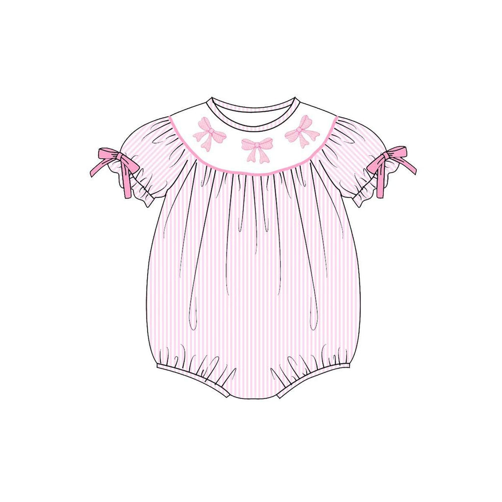 Preorder 12.08 MOQ 5 pcs SR3521 Valentine's Day Bows Stripe Baby Girls Romper