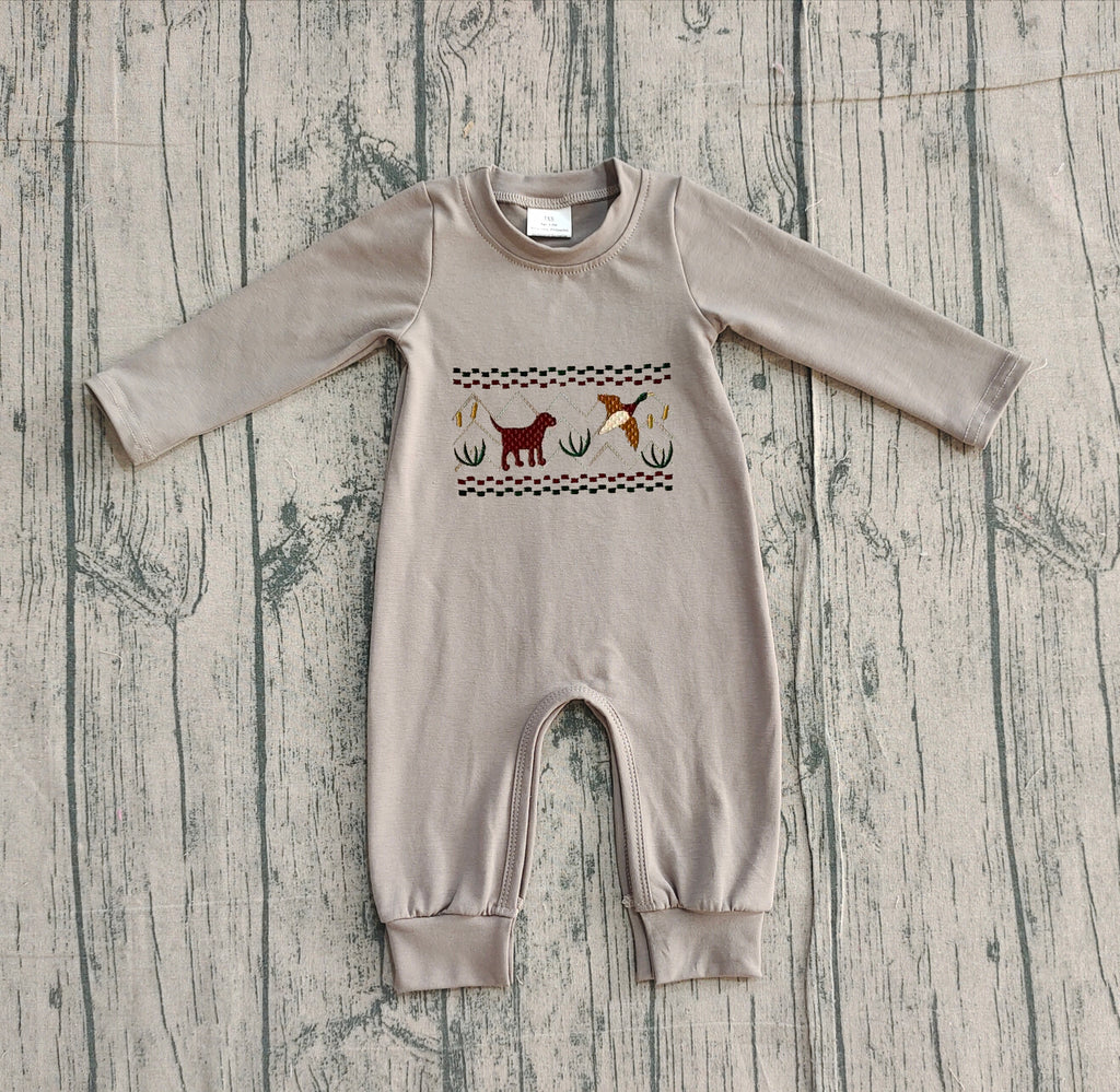 Preorder Samples LR2909 Embroidery Mallard Ducks Dog Baby Boys Romper