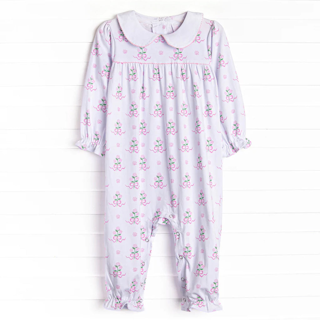 Preorder 12.13 MOQ 5 pcs LR2916 Flower Bouquet Bows Pink Baby Girls Romper