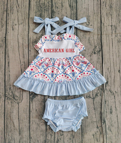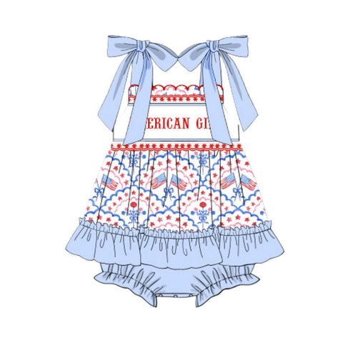 Preorder Samples SR3648 Embroidery American Girl Flag Baby Girls Romper