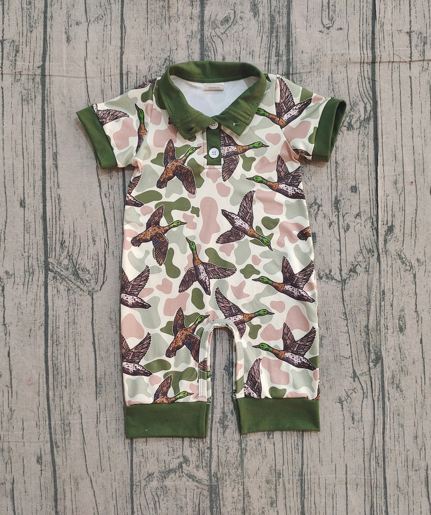 Preorder Samples SR3634 Mallard Ducks Green Baby Boys Romper