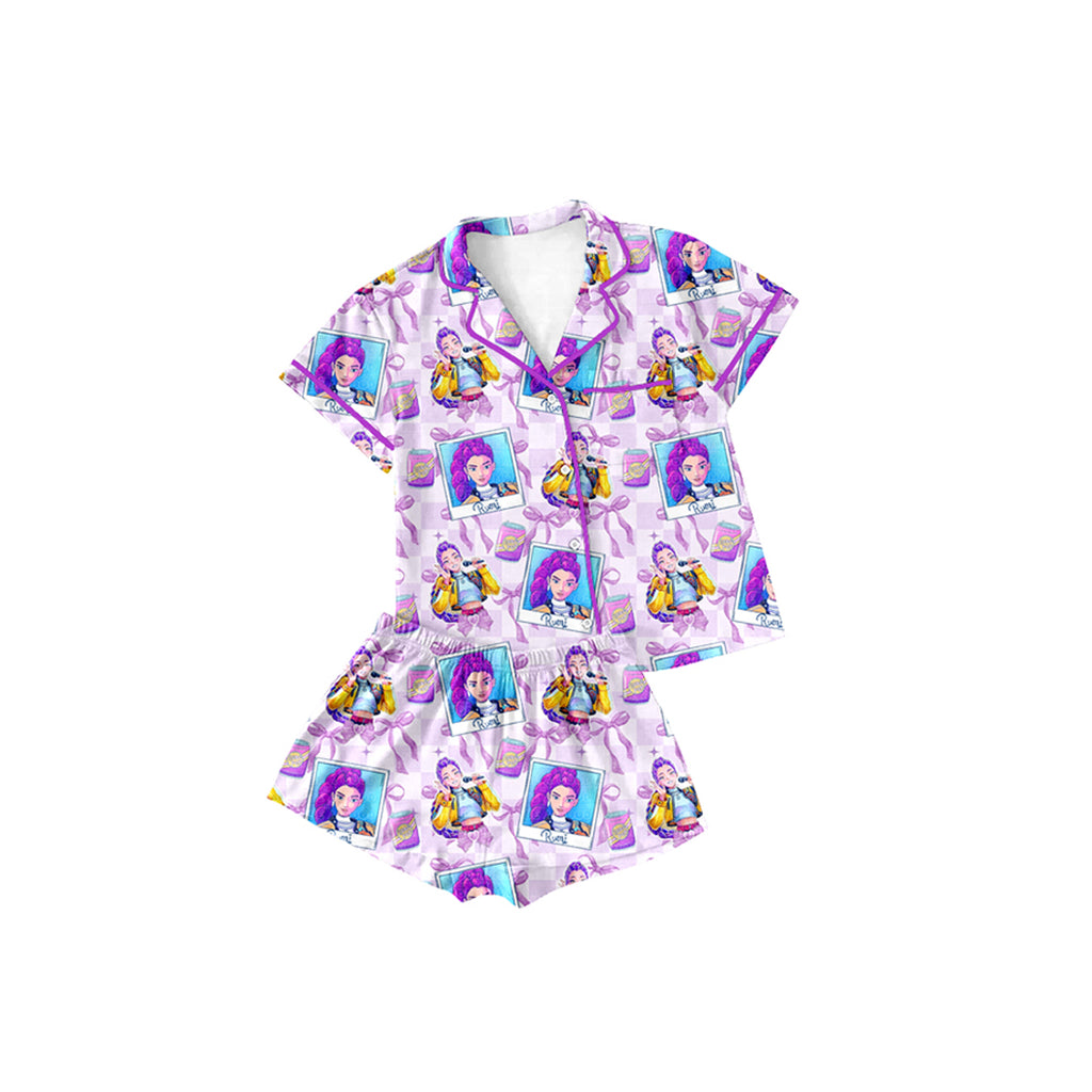 Preorder Samples GSSO2961 Cartoon Bows Purple Girls Shorts Pajamas Set