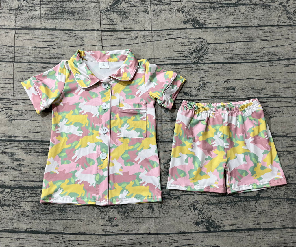 Preorder Samples GSSO2972 Easter Rabbit Pink Girls Shorts Pajamas Set