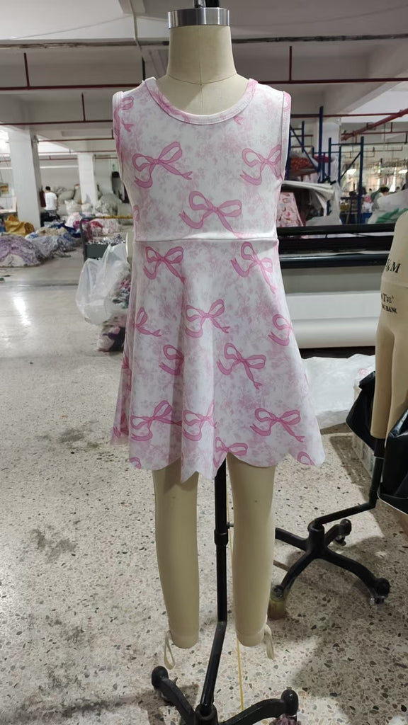 Preorder Samples GSD2572 Coquette Bows Cute Pink Yoga Girl's Dress Onesie