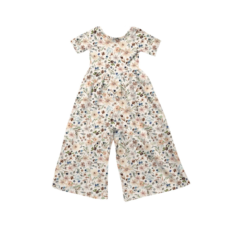 Preorder MOQ 5 pcs SR4199 Flower Floral Wide-leg Girl's Jumpsuit