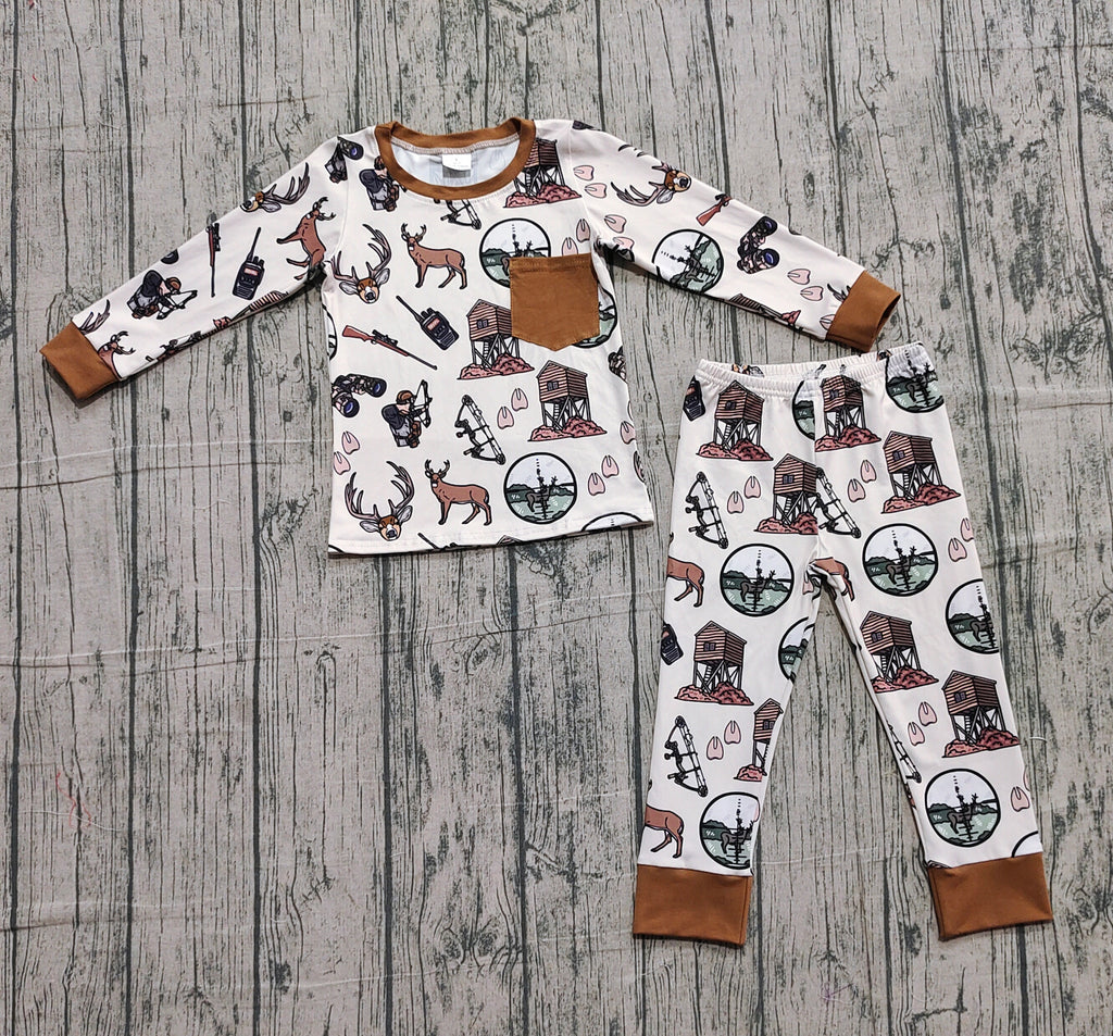 Preorder Samples BLP1236 Hunting Elk Brown Boys Pajamas Set