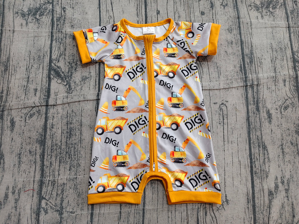 Preorder Samples SR0844 Excavator Dig Truck Car Baby Boys Sleepers Romper