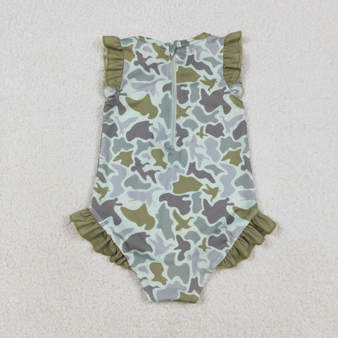 S0596 Hunting Camo Mallard Ducks Girls Swimsuit Onesie