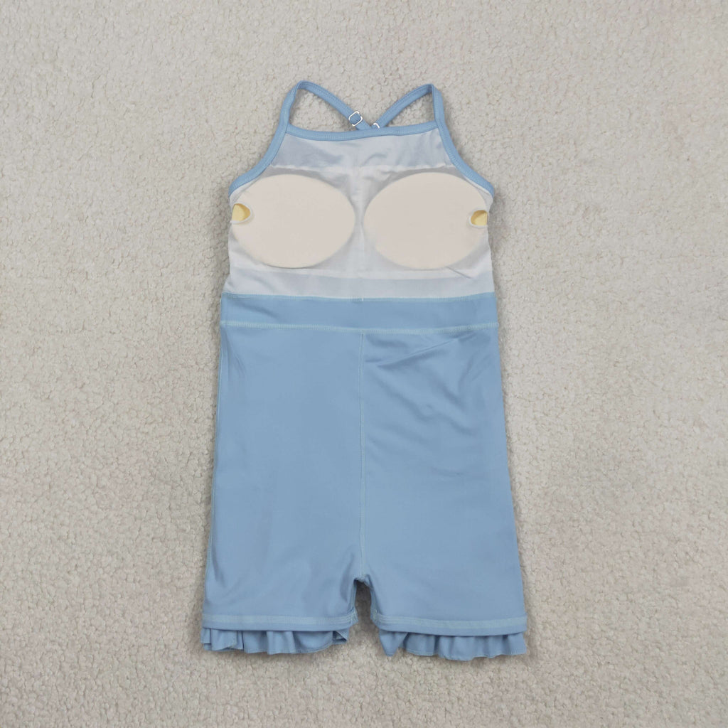 S0713 Blue Solid Color Yoga Girl's Dress Onesie