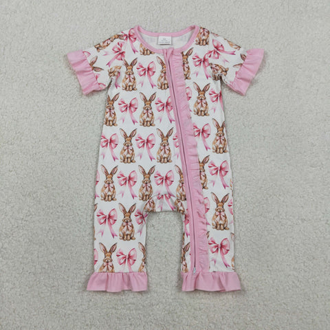 SR2020 Easter Rabbit Bows Baby Zipper Romper Sleepers