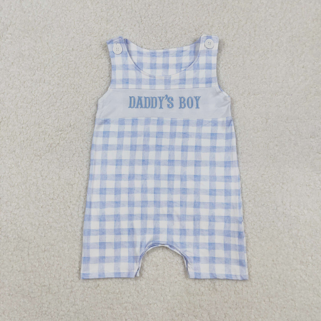SR2945 Embroidery Daddy's Boy Blue Plaid Baby Boys Romper