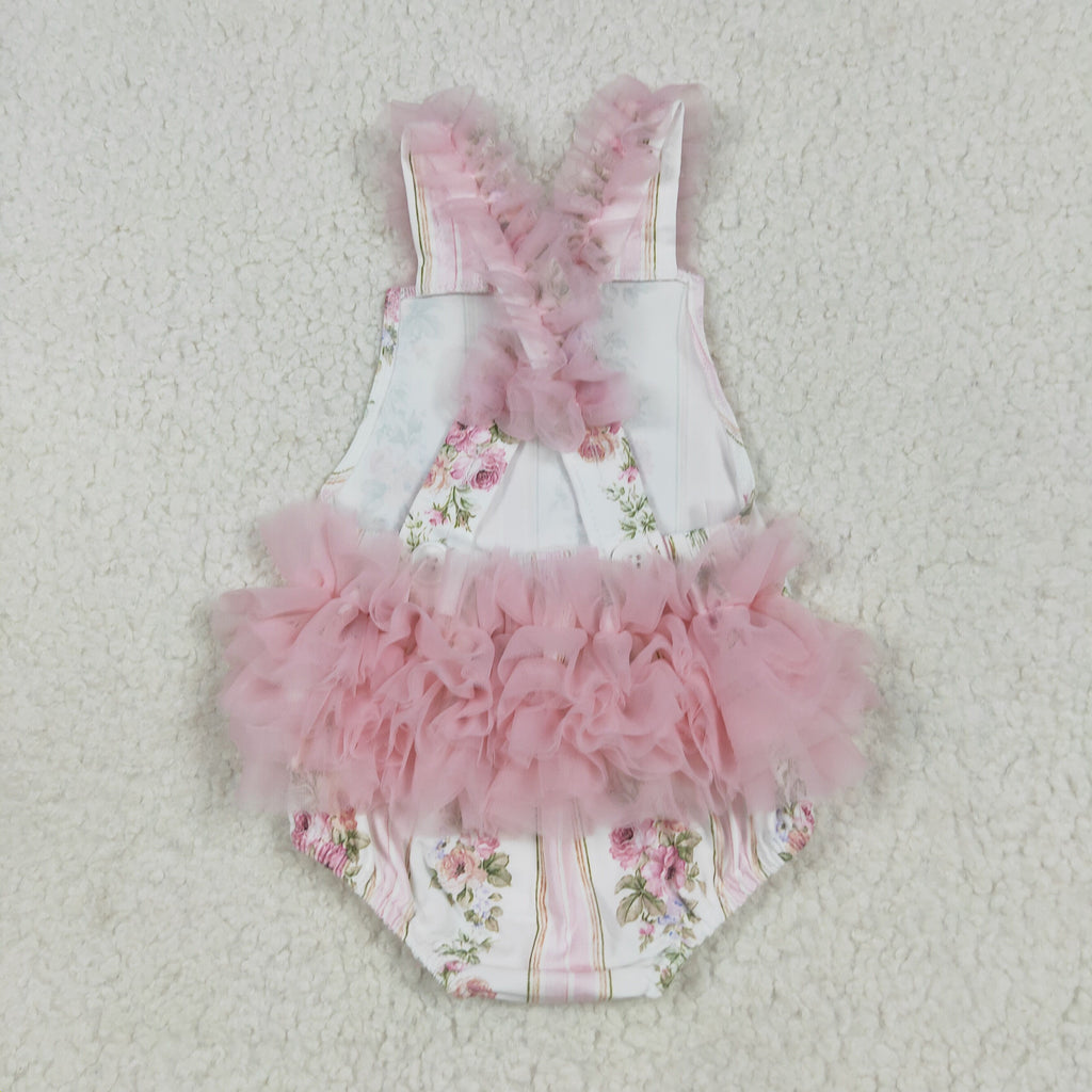 SR2964 Flower Tulle Pink Baby Girls Romper