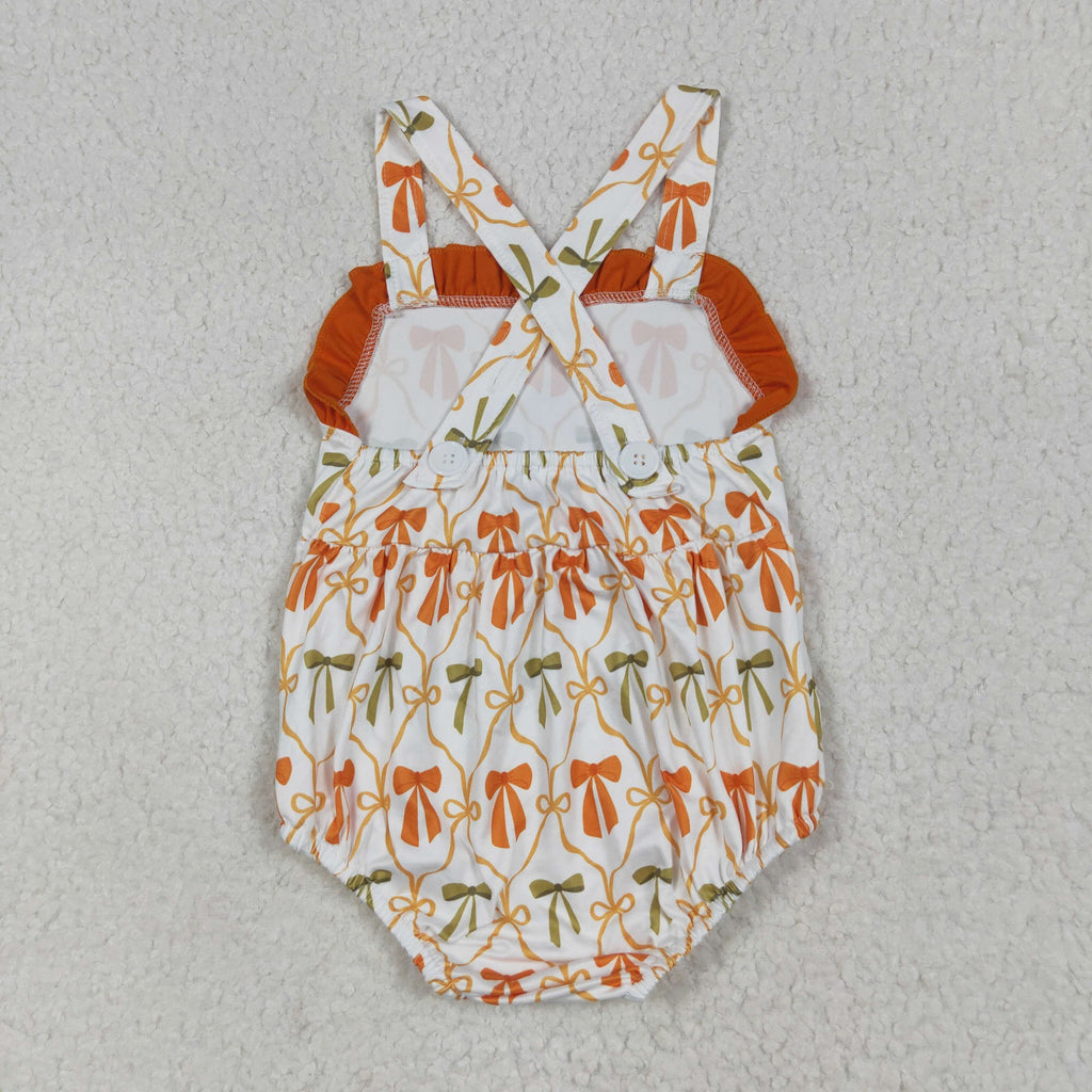 SR3148 Fall Bows Orange Stripe Baby Girls Romper