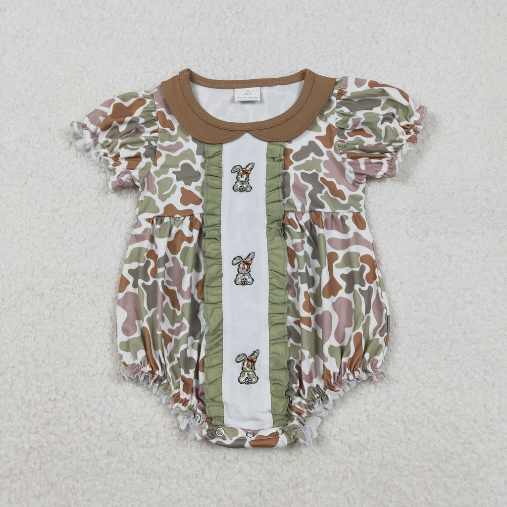 SR3259 Embroidery Easter Rabbit Camo Girls Romper