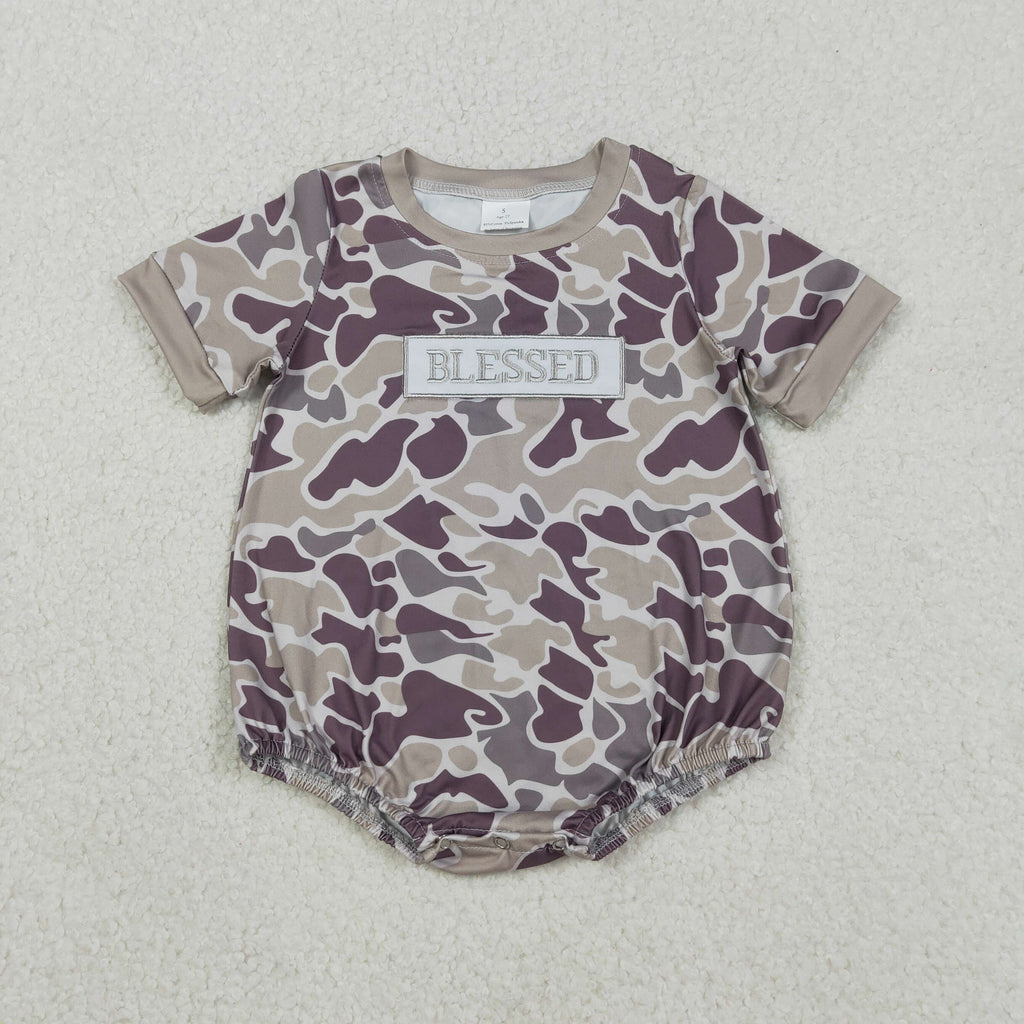 SR3263 Embroidery Blessed Camo Baby Boys Romper