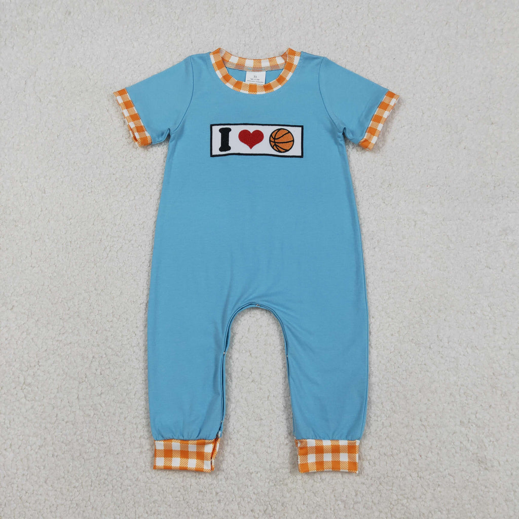 SR3366 Embroidery I Love Basketball Baby Boys Romper