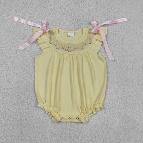 SR3561 Embroidery Flower Bows Yellow Baby Girls Romper