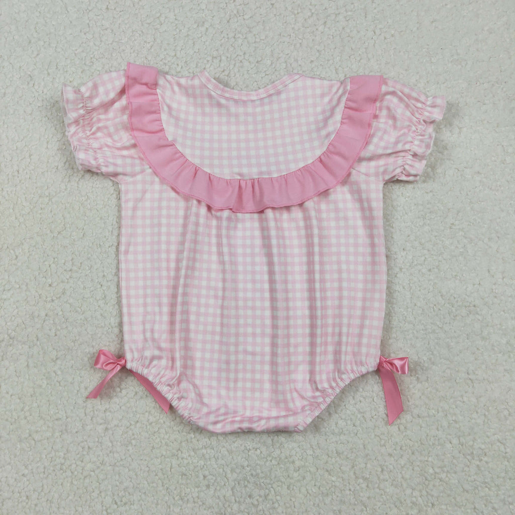 SR3565 Easter Rabbit Animals Plaid Baby Girls Romper