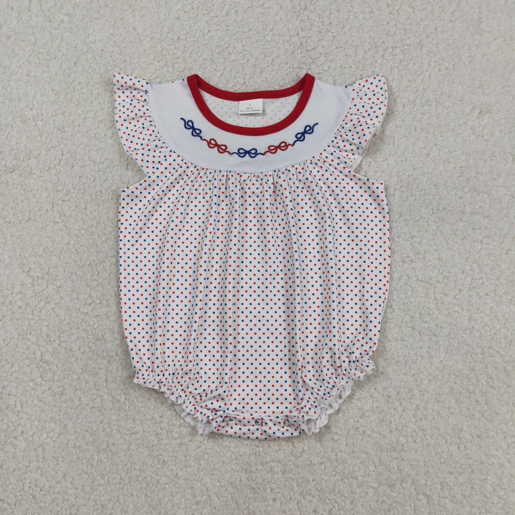 SR3706 Embroidery 4th of July USA Bows Dots Baby Girls Romper