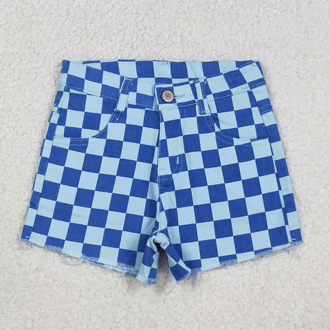 SS0763 Summer Blue Plaid Denim Girl's Shorts