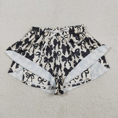 SS0770 Black Coquette Bows Yoga Girl's Shorts