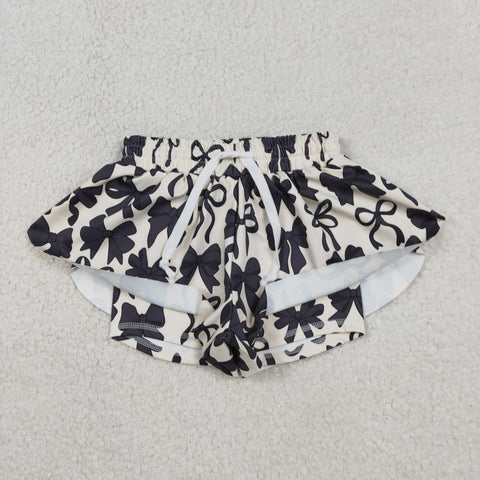 SS0770 Black Coquette Bows Yoga Girl's Shorts