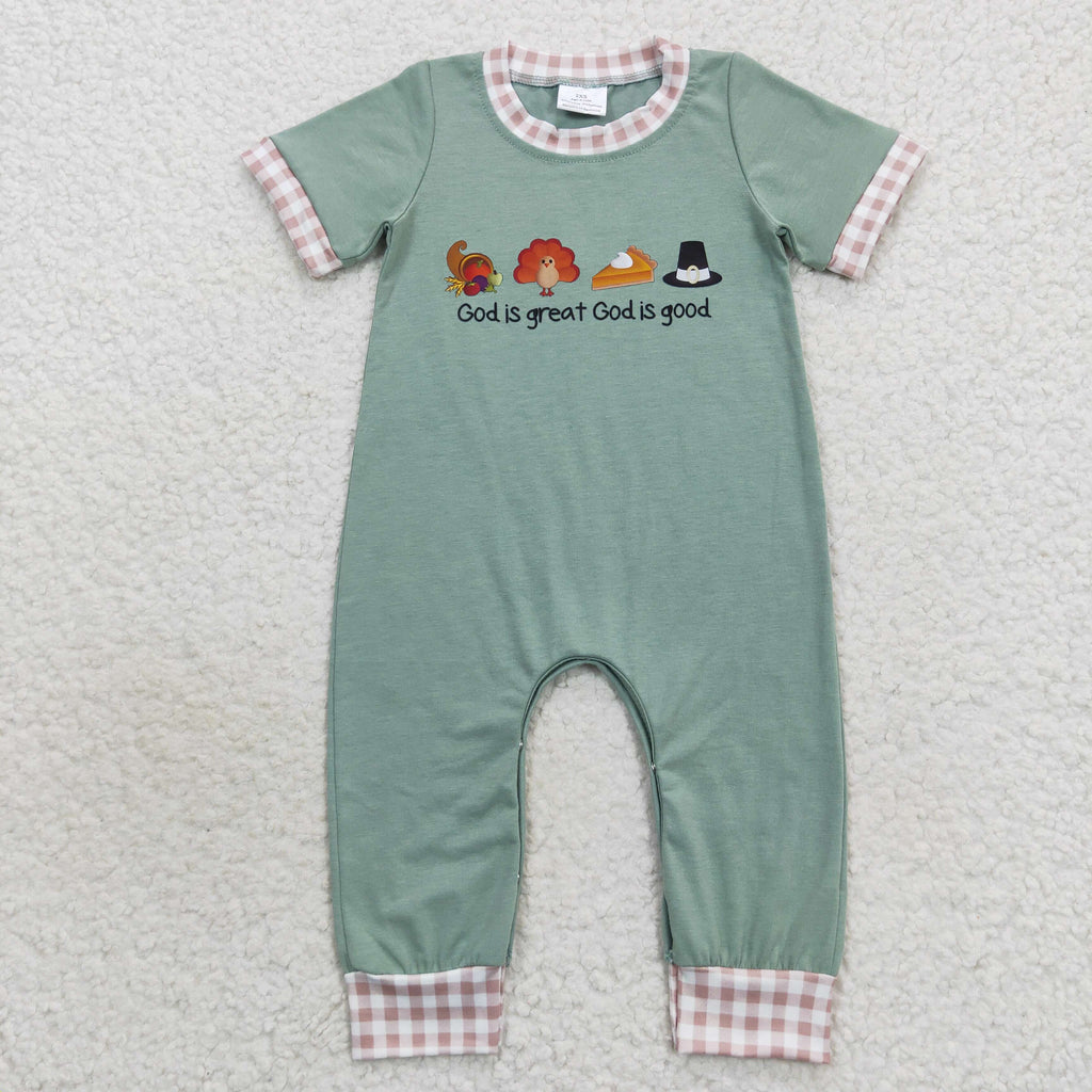 LR2658 Christmas Green Animal Red Baby Footie Sleepers Romper