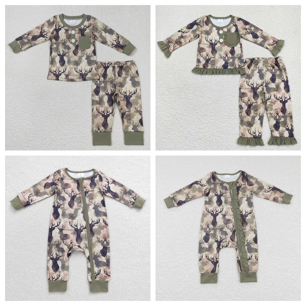 Winter Forest Elk Deer Dark Green Kids Sibling Matching Clothes